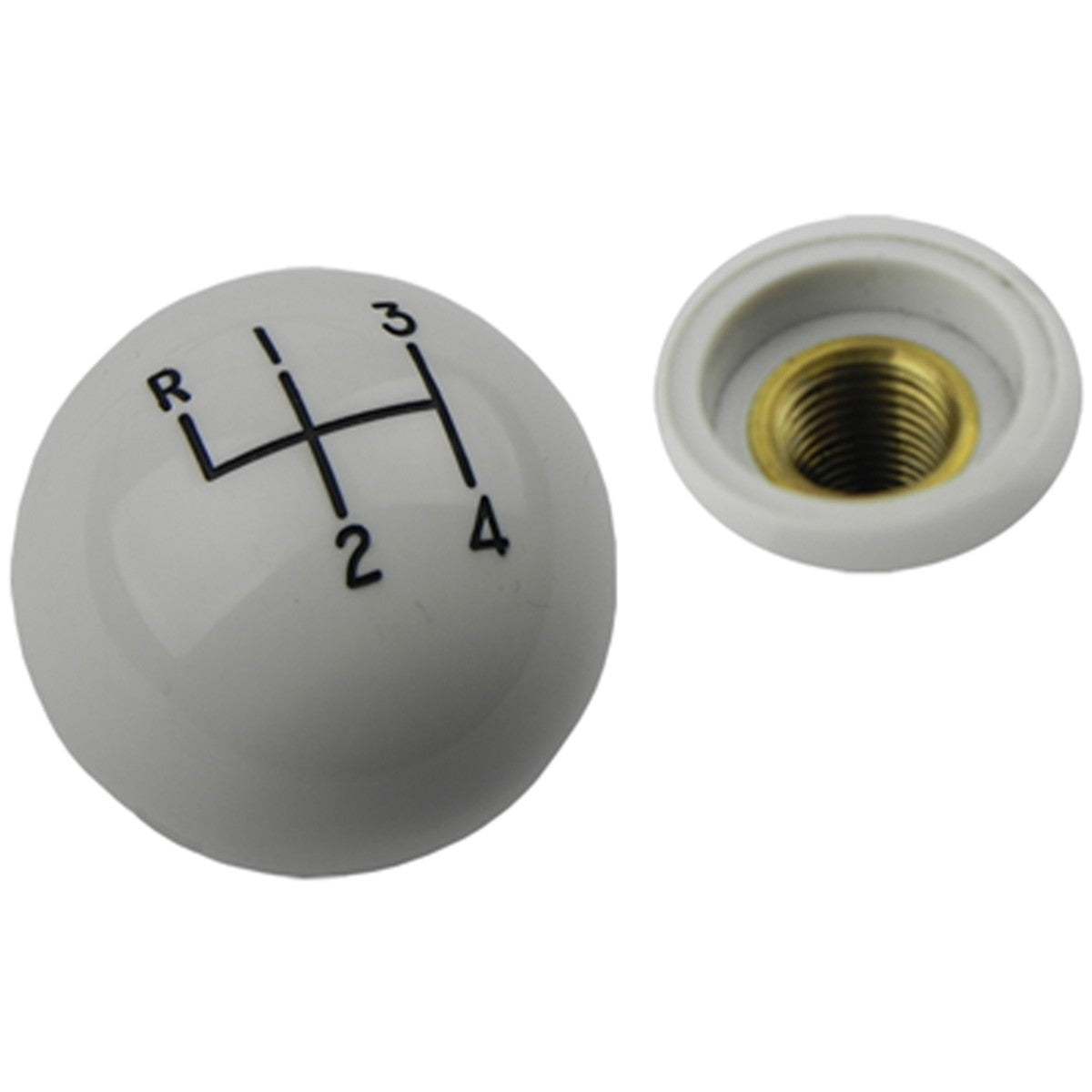 White Hurst Gear Shift Knob, Fine Thread with Black Letters
