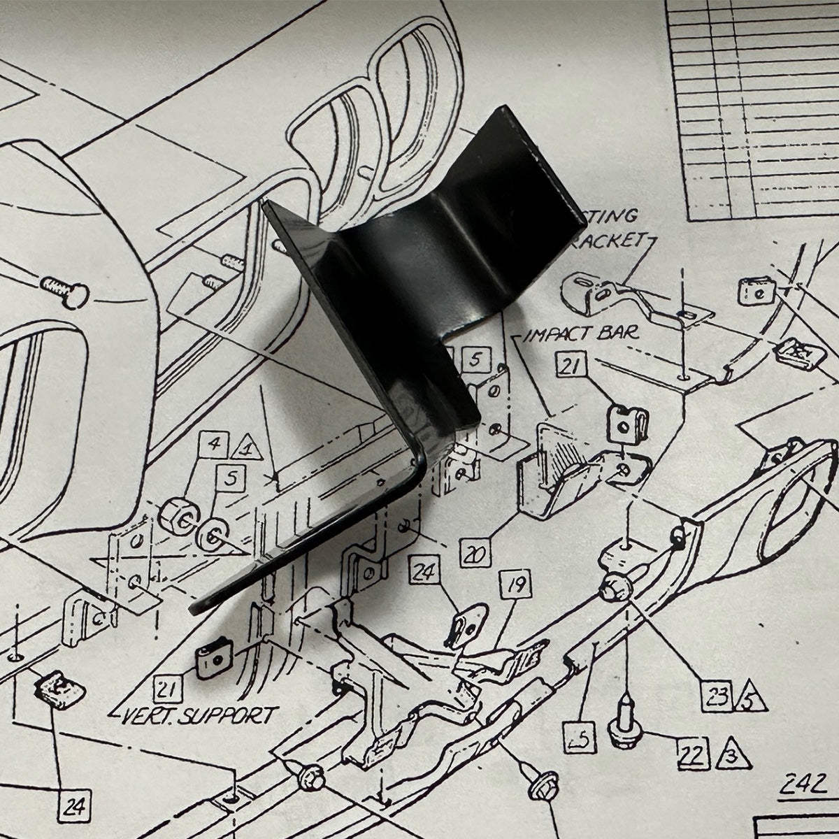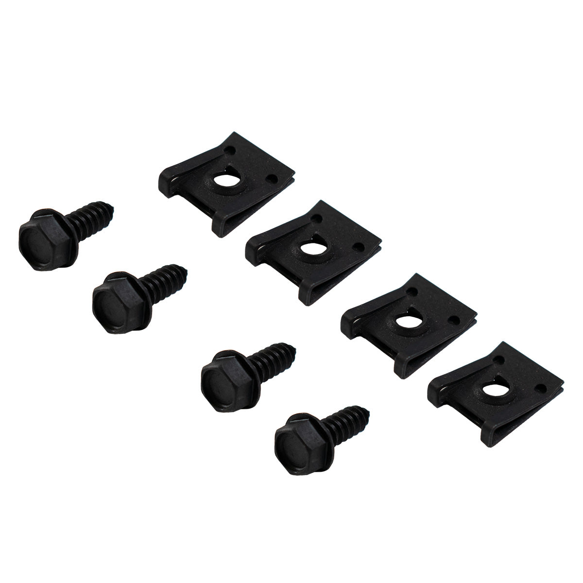 This front hood release pull bracket mounting hardware kit is used to secure the hood release bracket to the center core support bracket and the lower license plate support. The kit includes smaller bolts and clip nuts that are specific to this mounting location and are required for proper attachment of the bracket to the core support center brace. Intended for restoration or service use, this hardware provides correct-style fitment and retention where original fasteners are required. The set includes a total of 8pc.