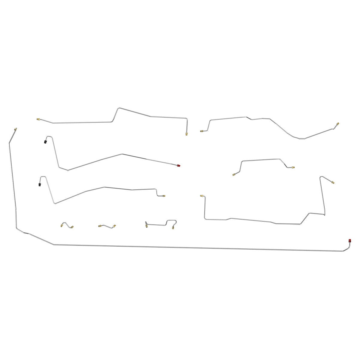 This preformed complete brake line kit will replace all the metal brake lines on your vehicle and includes the master cylinder lines, left front line and right-front crossover line, intermediate lines, and rear axle lines/trailing arm lines.