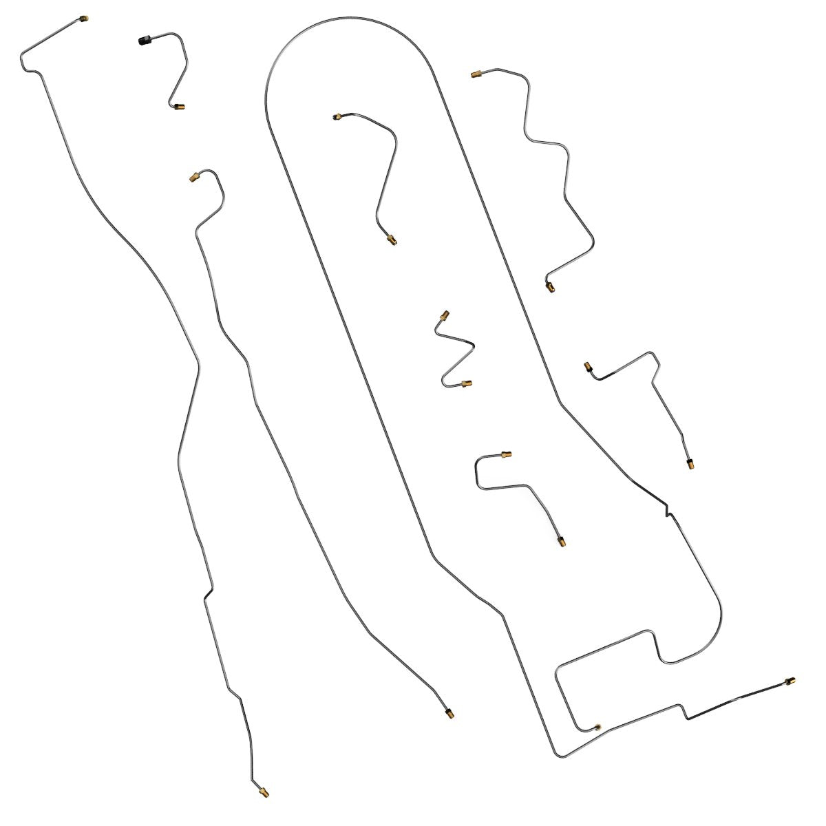 This preformed complete brake line kit will replace all the metal brake lines on your vehicle and includes the master cylinder lines, left front line and right-front crossover line, intermediate lines, and rear axle lines/trailing arm lines.