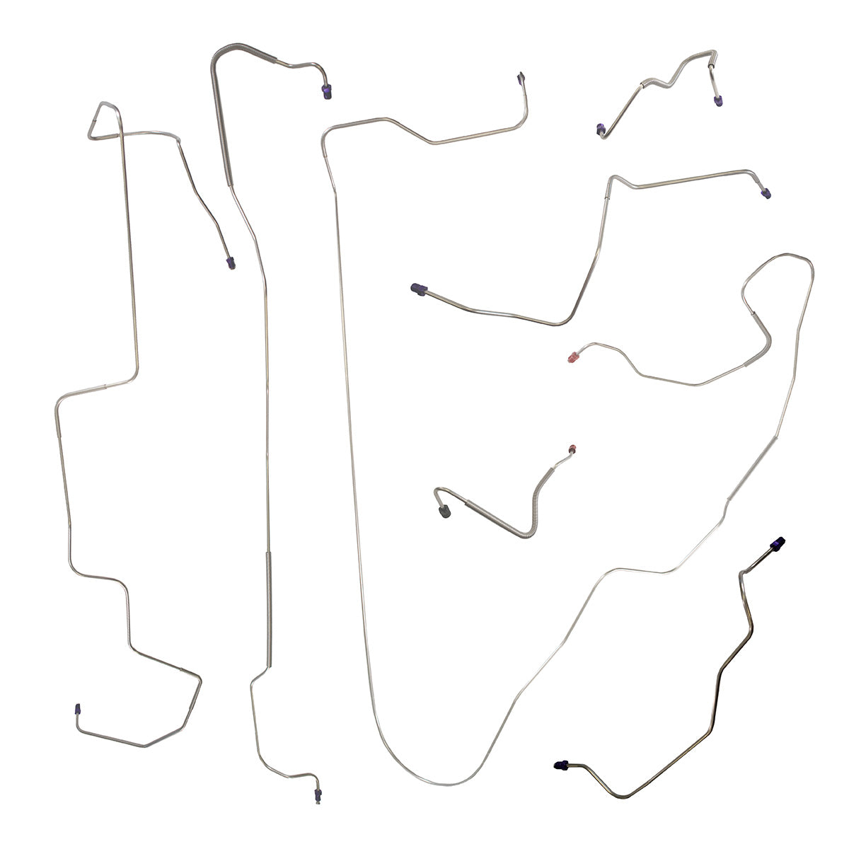 This preformed complete brake line kit will replace all the metal brake lines on your vehicle and includes the master cylinder lines, left front line and right-front crossover line, intermediate lines, and rear axle lines/trailing arm lines.