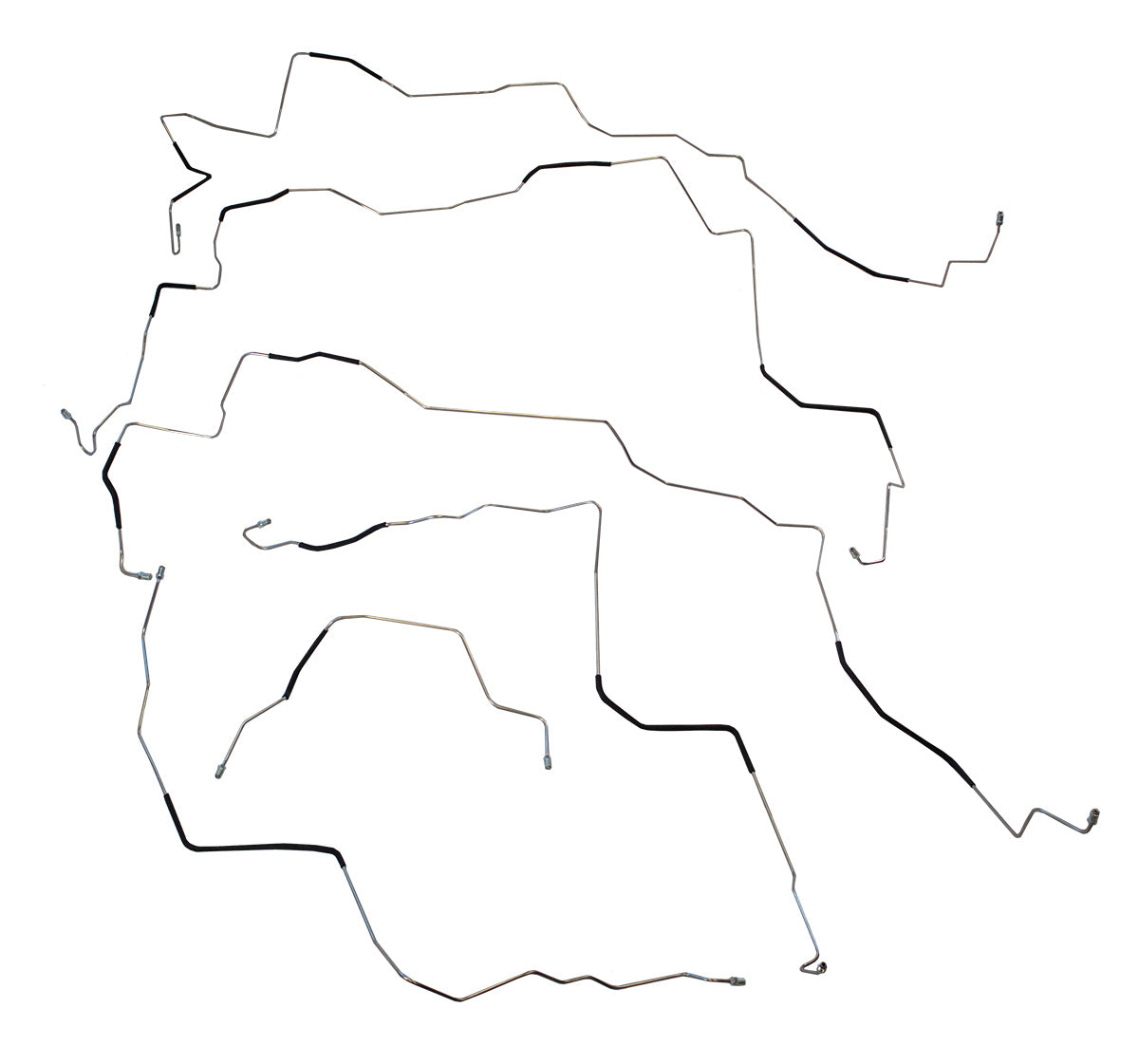This preformed complete brake line kit will replace all the metal brake lines on your vehicle and includes the master cylinder lines, left front line and right front crossover line, intermediate lines, and rear axle lines/trailing arm lines.