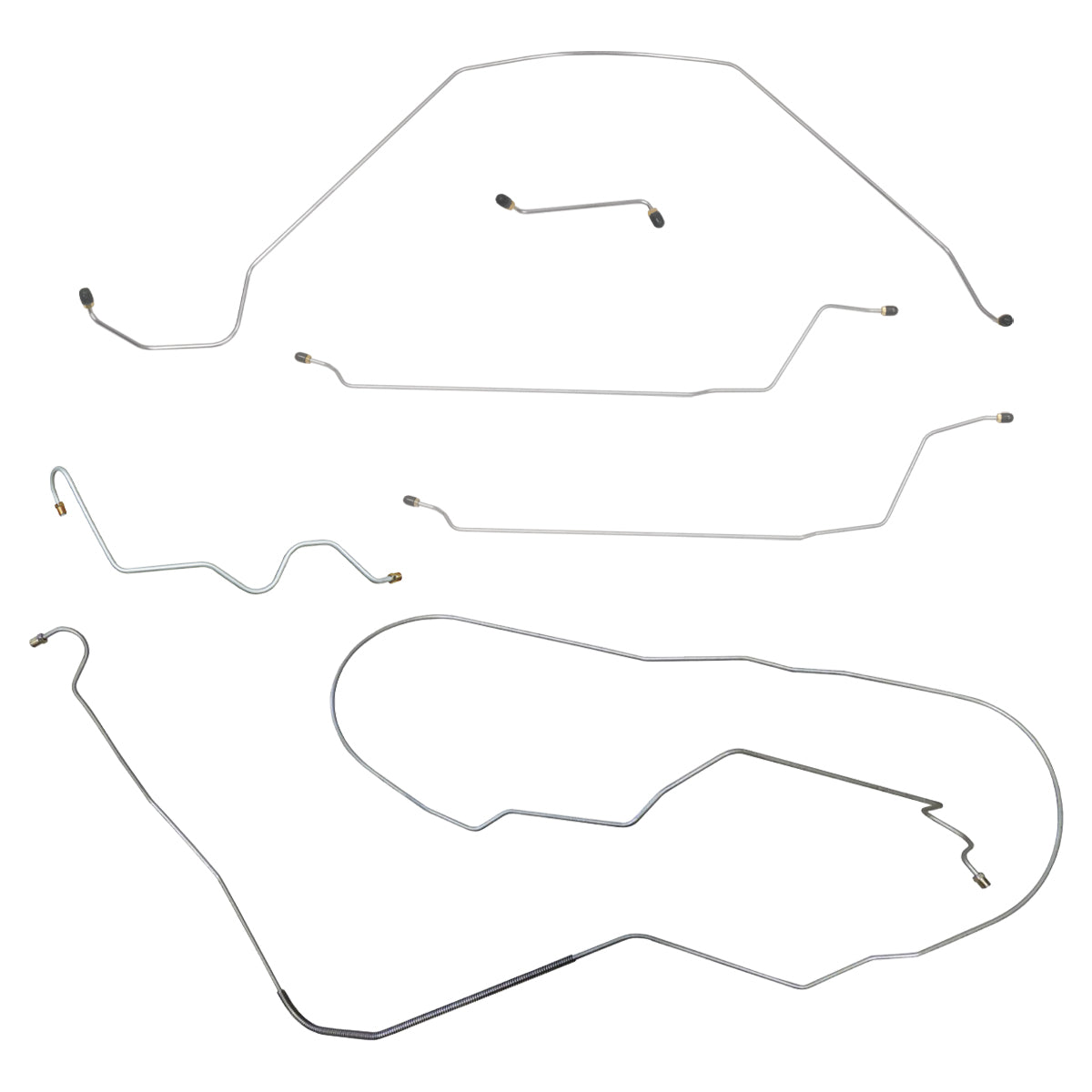 This preformed complete brake line kit will replace all the metal brake lines on your vehicle and includes the master cylinder lines, left front line and right-front crossover line, intermediate lines, and rear axle lines/trailing arm lines.