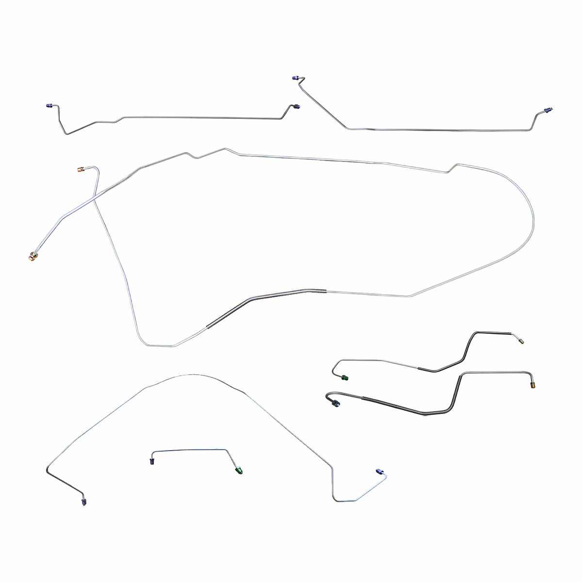 This preformed complete brake line kit will replace all the metal brake lines on your vehicle and includes the master cylinder lines, left front line and right-front crossover line, intermediate lines, and rear axle lines/trailing arm lines.