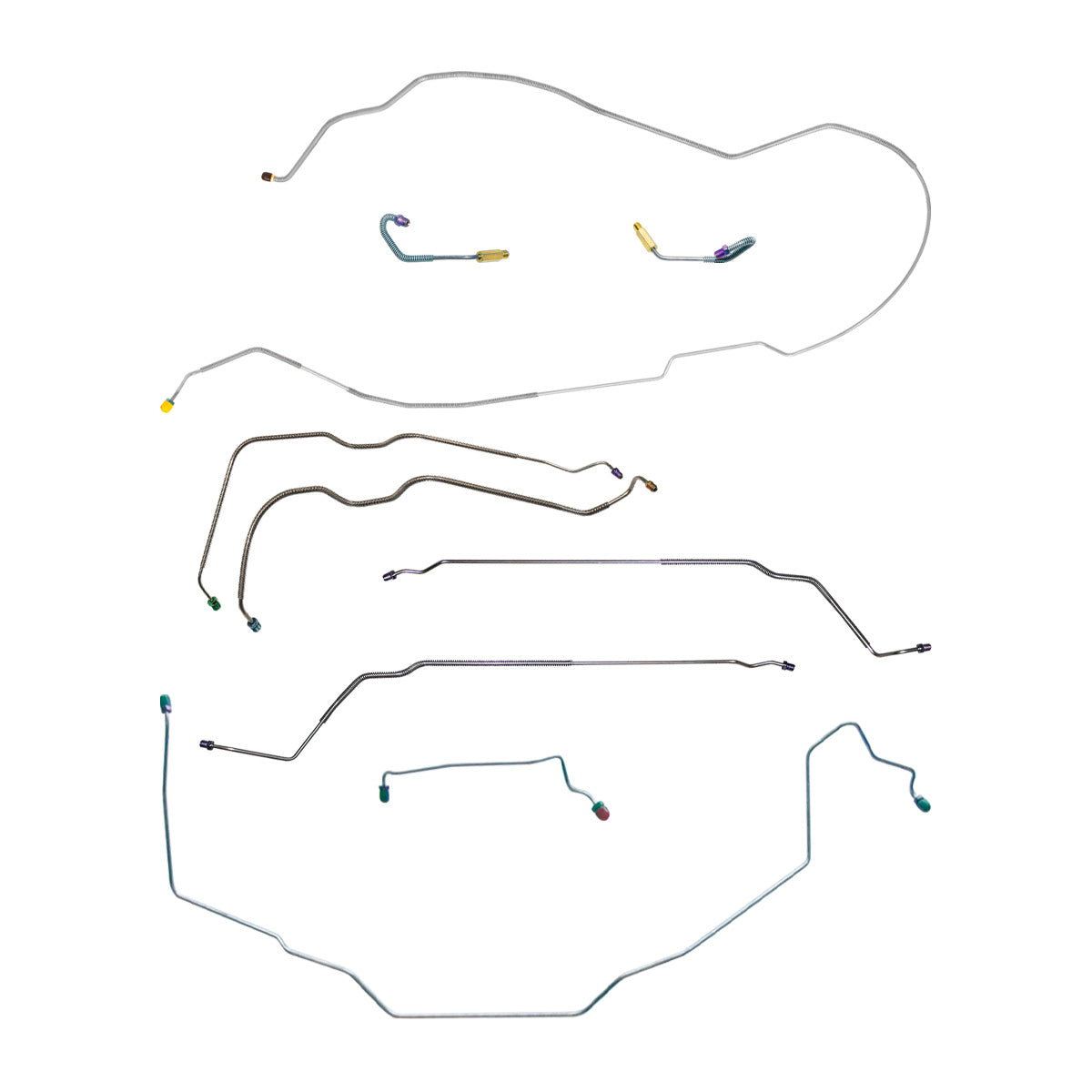 This preformed complete brake line kit will replace all the metal brake lines on your vehicle and includes the master cylinder lines, left front line and right-front crossover line, intermediate lines, and rear axle lines/trailing arm lines.