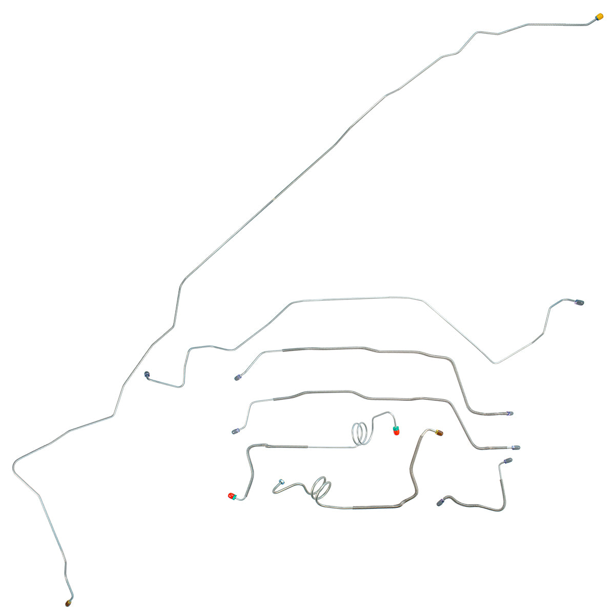 This preformed complete brake line kit will replace all the metal brake lines on your vehicle and includes the master cylinder lines, left front line and right front crossover line, intermediate lines, and rear axle lines/trailing arm lines.