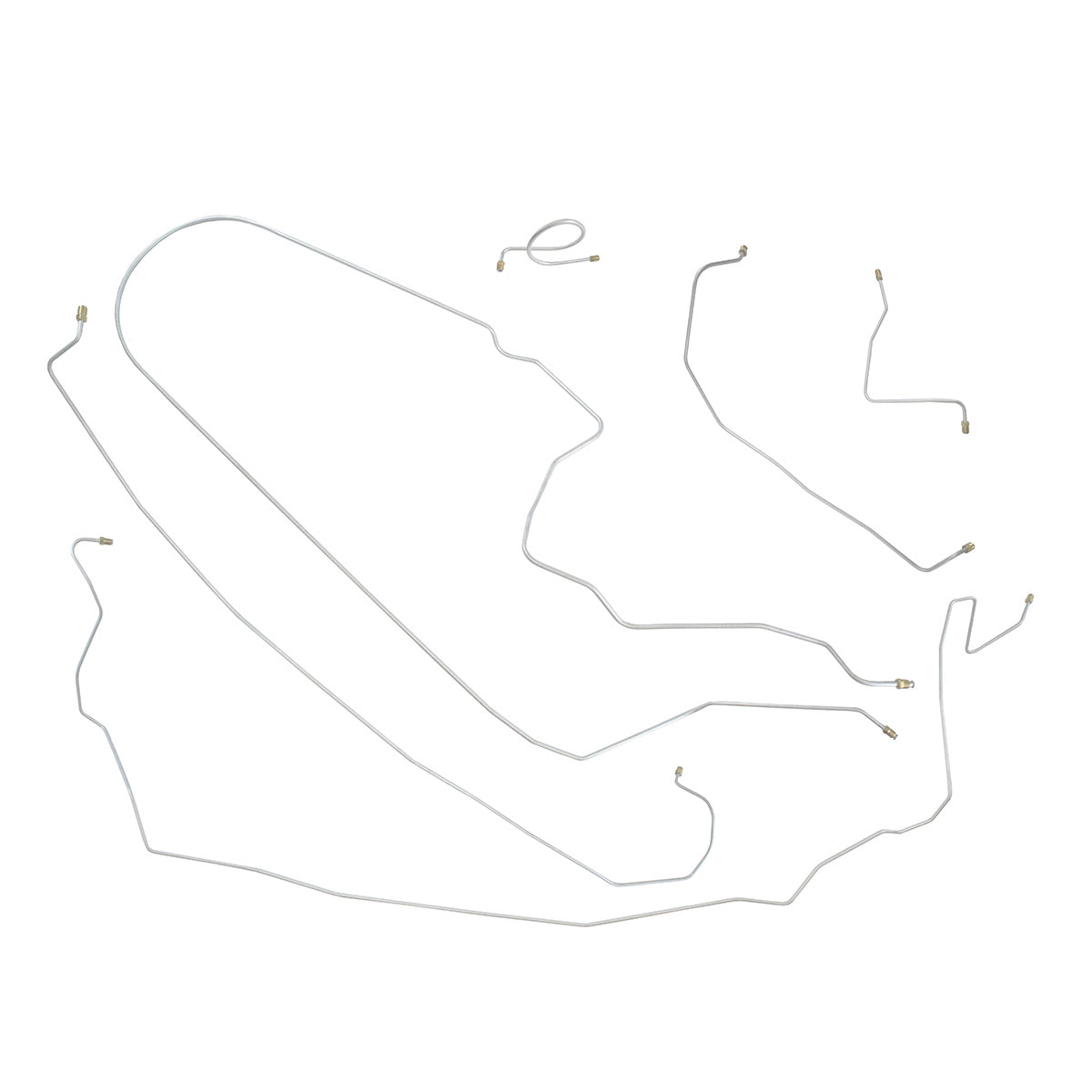 This preformed complete brake line kit will replace all the metal brake lines on your vehicle and includes the master cylinder lines, left front line and right-front crossover line, intermediate lines, and rear axle lines/trailing arm lines.