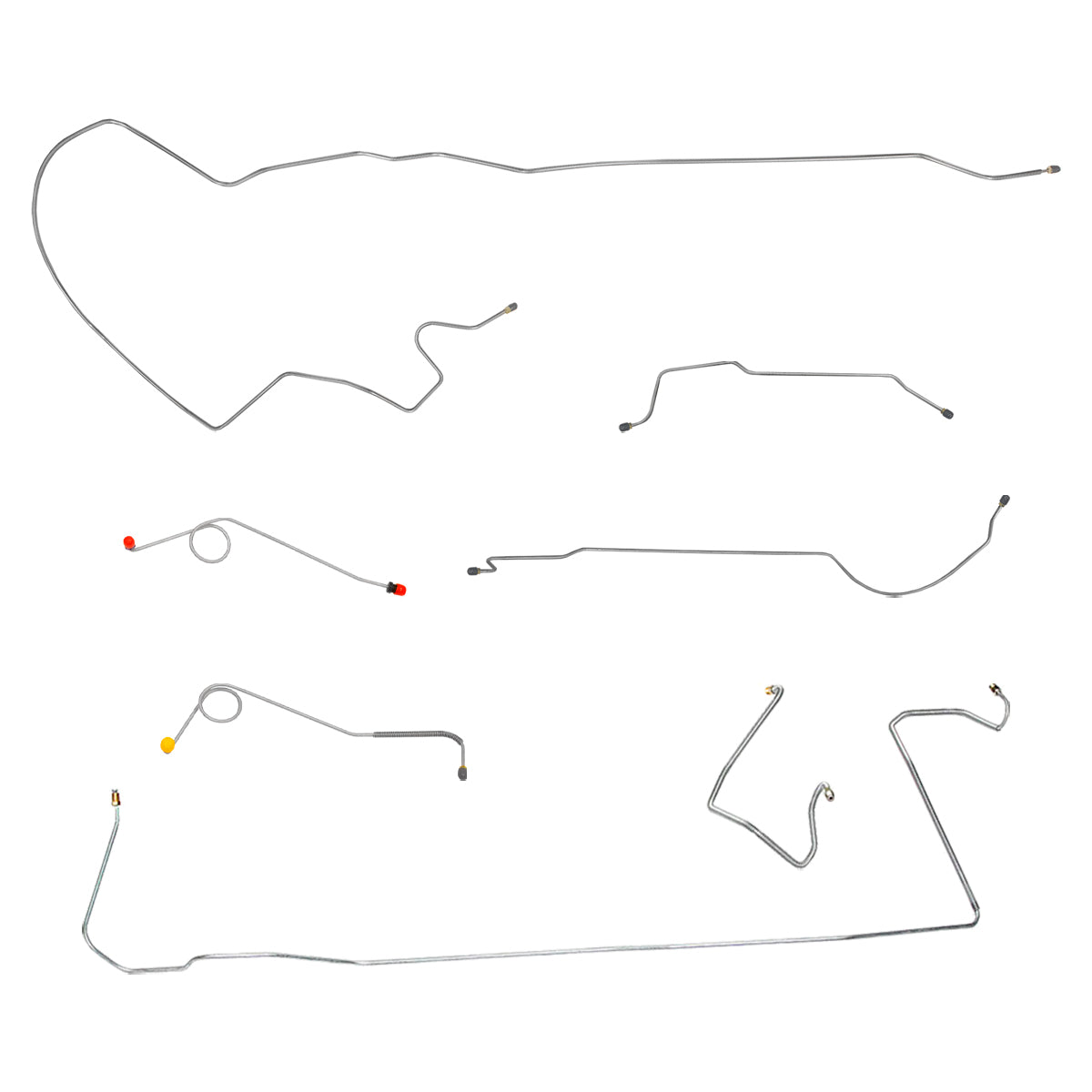 This preformed complete brake line kit will replace all the metal brake lines on your vehicle and includes the master cylinder lines, left front line and right-front crossover line, intermediate lines, and rear axle lines/trailing arm lines.