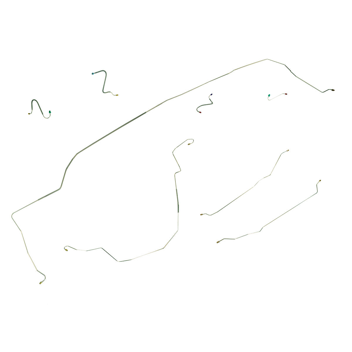 This preformed complete brake line kit will replace all the metal brake lines on your vehicle and includes the master cylinder lines, left front line and right-front crossover line, intermediate lines, and rear axle lines/trailing arm lines.