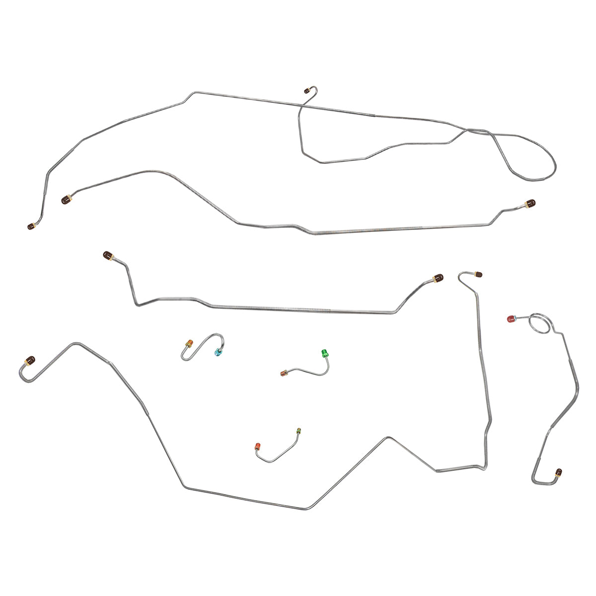 This preformed complete brake line kit will replace all the metal brake lines on your vehicle and includes the master cylinder lines, left front line and right front crossover line, intermediate lines, and rear axle lines/trailing arm lines.