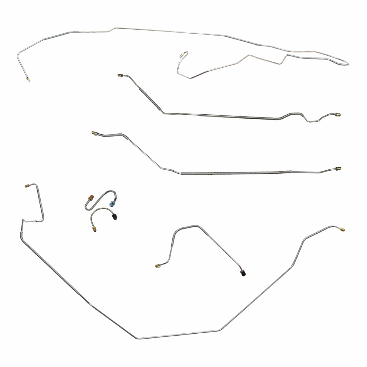 This preformed complete brake line kit will replace all the metal brake lines on your vehicle and includes the master cylinder lines, left front line and right-front crossover line, intermediate lines, and rear axle lines/trailing arm lines.