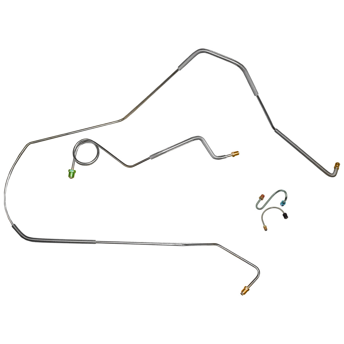 This preformed front brake line kit includes all the metal brake lines to supply the front two wheels of your vehicle and includes the master cylinder lines, left front line, and right front crossover line.