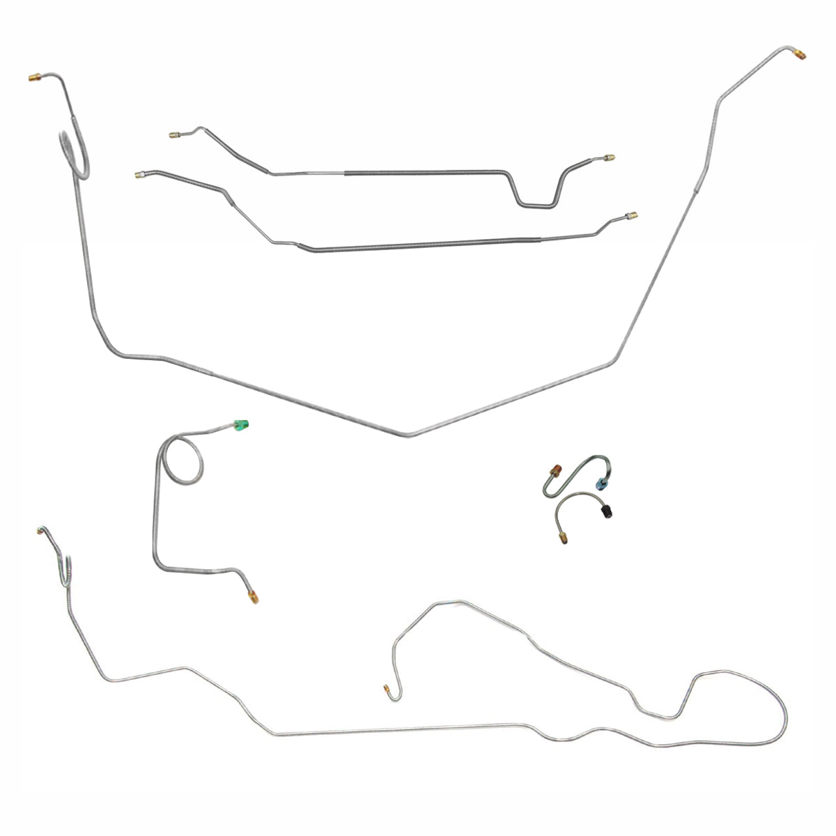 This preformed complete brake line kit will replace all the metal brake lines on your vehicle and includes the master cylinder lines, left front line and right-front crossover line, intermediate lines, and rear axle lines/trailing arm lines.