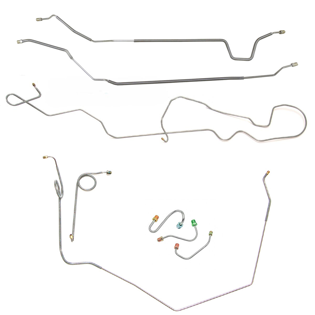 This preformed complete brake line kit will replace all the metal brake lines on your vehicle and includes the master cylinder lines, left front line and right-front crossover line, intermediate lines, and rear axle lines/trailing arm lines.