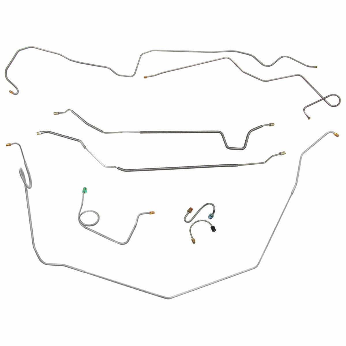 This preformed complete brake line kit will replace all the metal brake lines on your vehicle and includes the master cylinder lines, left front line and right front crossover line, intermediate lines, and rear axle lines/trailing arm lines.