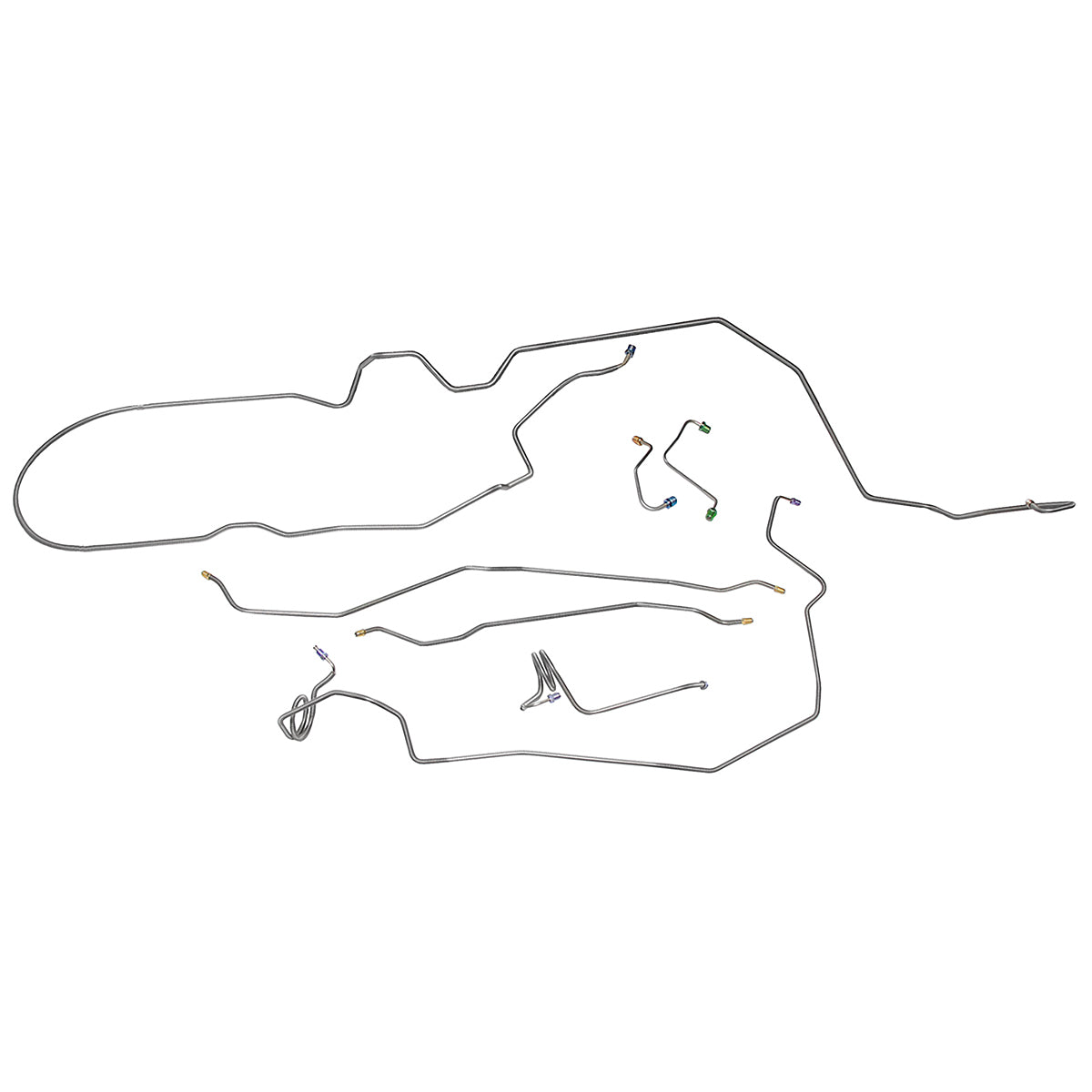 This preformed complete brake line kit will replace all the metal brake lines on your vehicle and includes the master cylinder lines, left front line and right-front crossover line, intermediate lines, and rear axle lines/trailing arm lines.