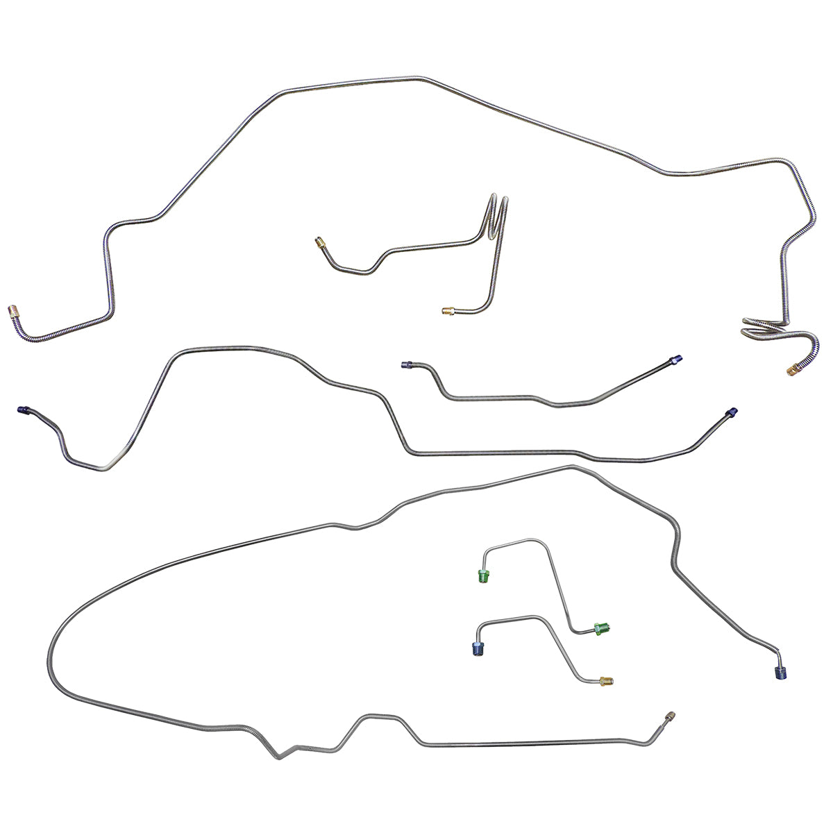 This preformed complete brake line kit will replace all the metal brake lines on your vehicle and includes the master cylinder lines, left front line and right front crossover line, intermediate lines, and rear axle lines/trailing arm lines.