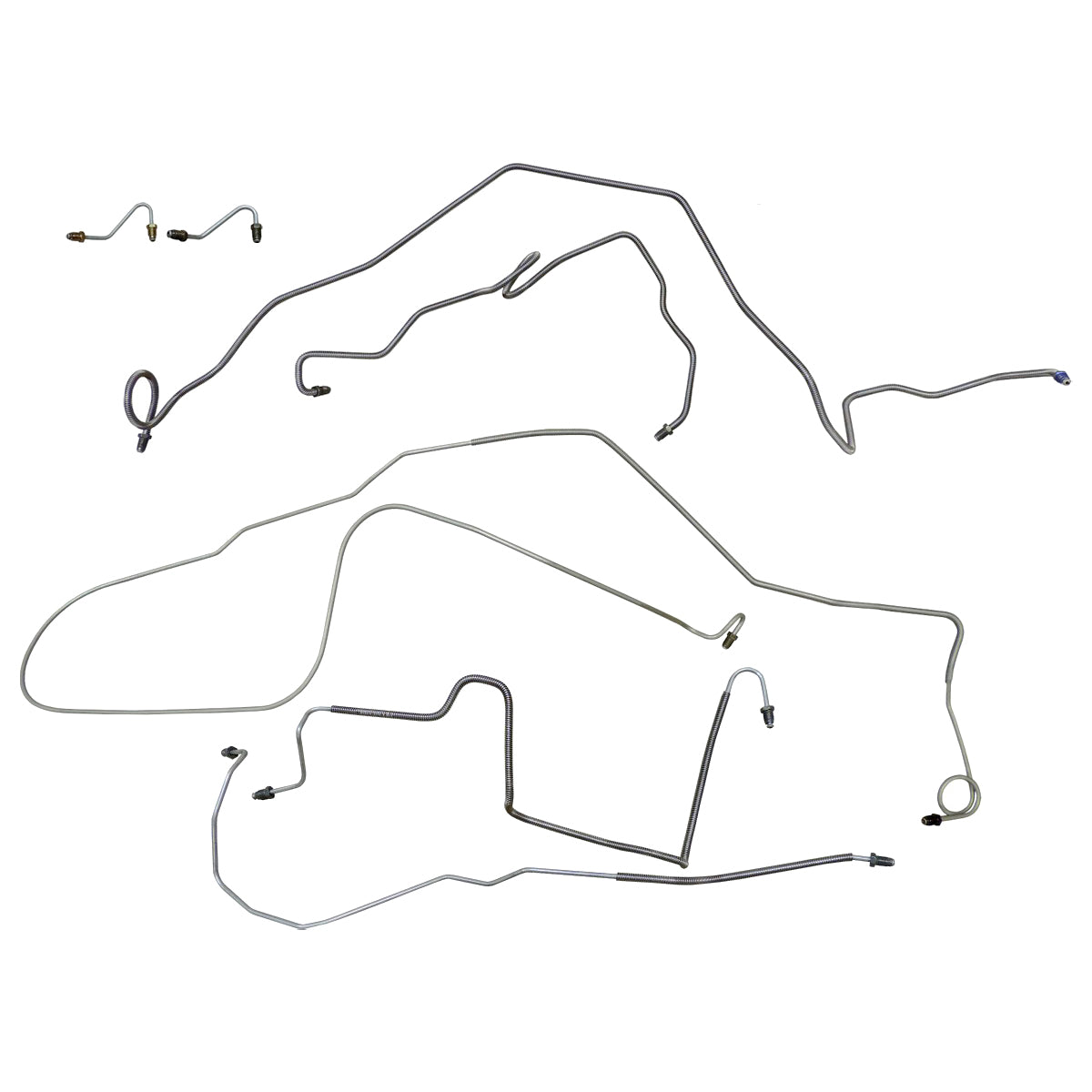 This preformed complete brake line kit will replace all the metal brake lines on your vehicle and includes the master cylinder lines, left front line and right front crossover line, intermediate lines, and rear axle lines/trailing arm lines.