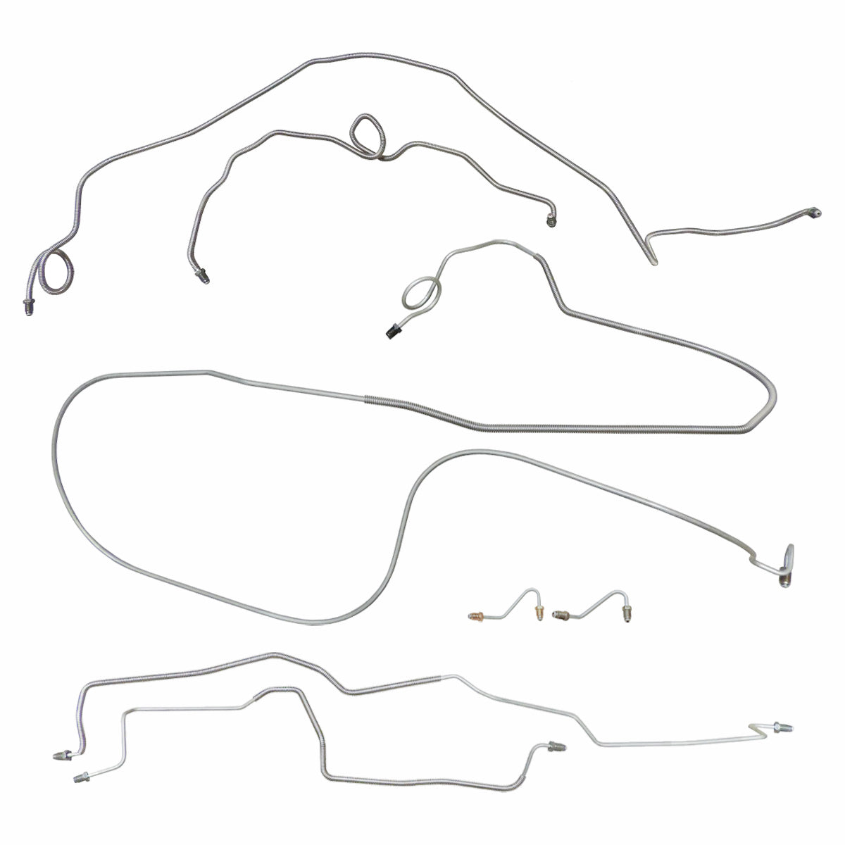 This preformed complete brake line kit will replace all the metal brake lines on your vehicle and includes the master cylinder lines, left front line and right front crossover line, intermediate lines, and rear axle lines/trailing arm lines.