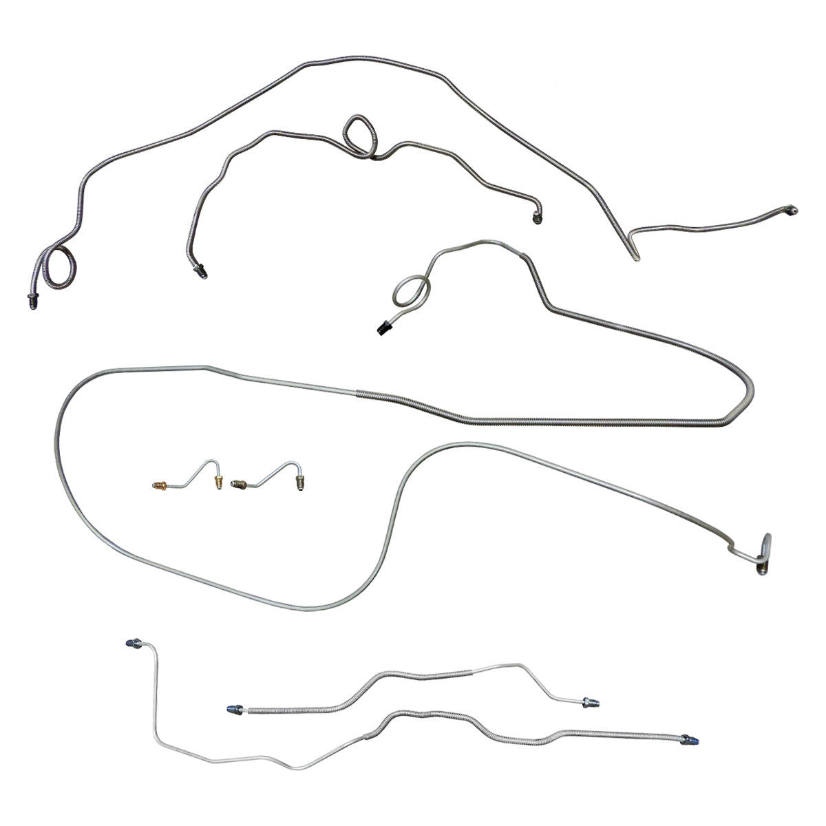 This preformed complete brake line kit will replace all the metal brake lines on your vehicle and includes the master cylinder lines, left front line and right front crossover line, intermediate lines, and rear axle lines/trailing arm lines.