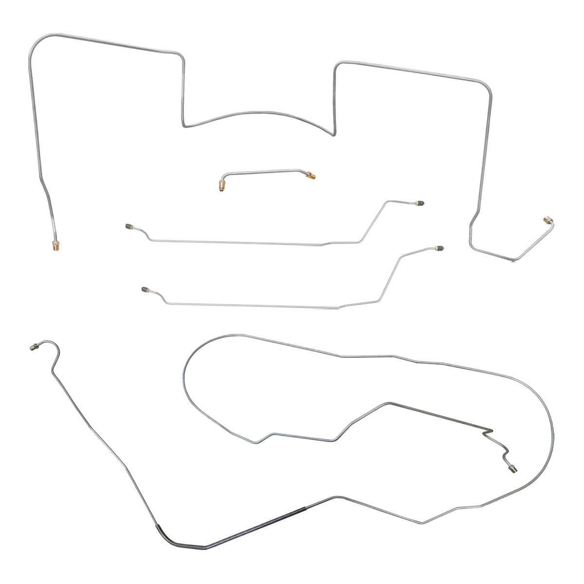 This preformed complete brake line kit will replace all the metal brake lines on your vehicle and includes the master cylinder lines, left front line and right-front crossover line, intermediate lines, and rear axle lines/trailing arm lines.