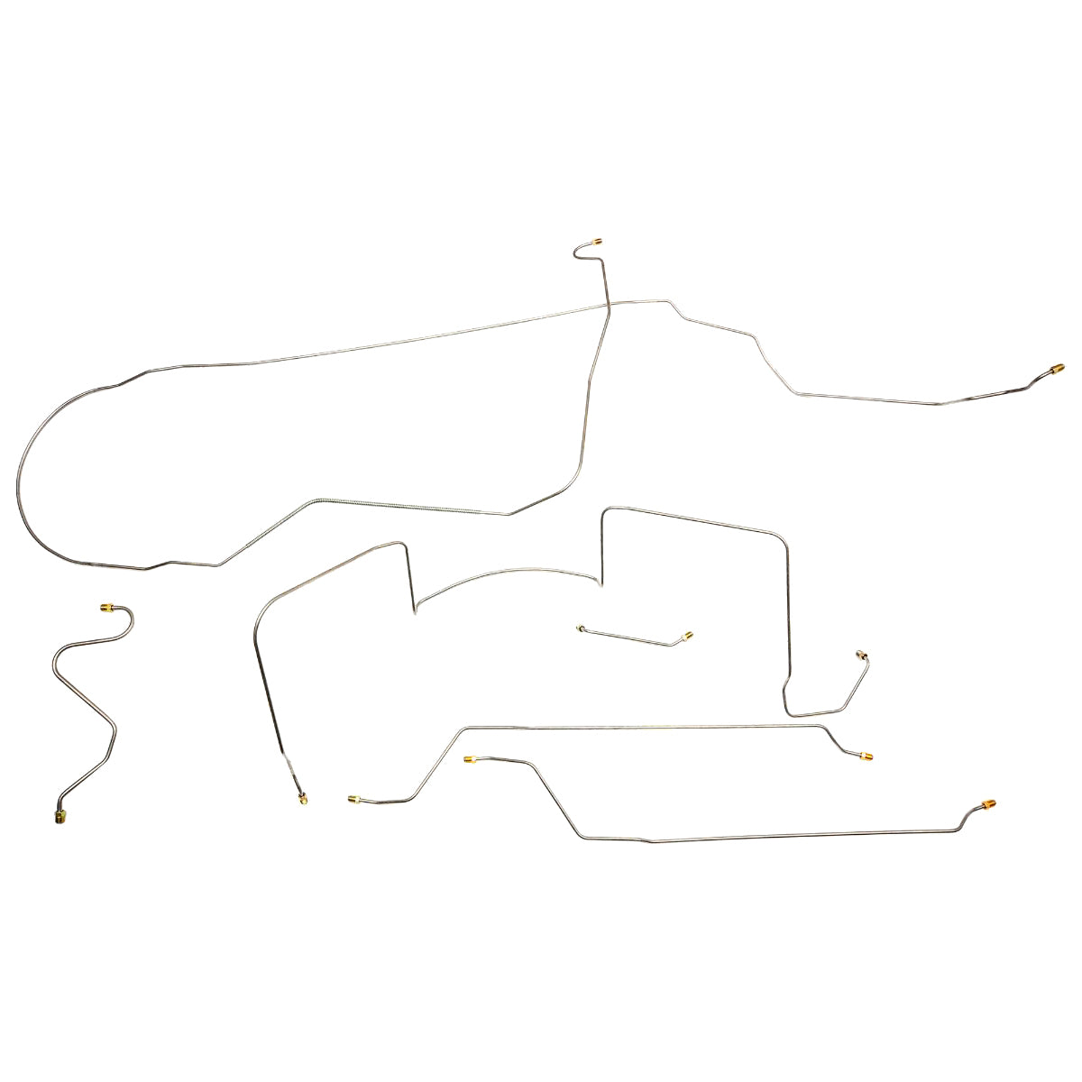 This preformed complete brake line kit will replace all the metal brake lines on your vehicle and includes the master cylinder lines, left front line and right front crossover line, intermediate lines, and rear axle lines/trailing arm lines.
