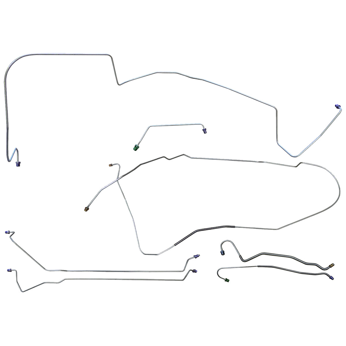 This preformed complete brake line kit will replace all the metal brake lines on your vehicle and includes the master cylinder lines, left front line and right front crossover line, intermediate lines, and rear axle lines/trailing arm lines.