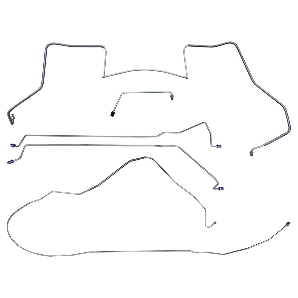 This preformed complete brake line kit will replace all the metal brake lines on your vehicle and includes the master cylinder lines, left front line and right-front crossover line, intermediate lines, and rear axle lines/trailing arm lines.