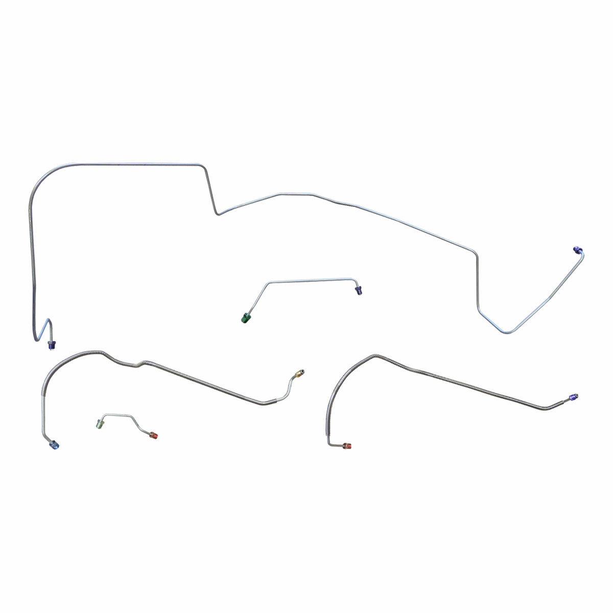 This preformed front brake line kit includes all the metal brake lines to supply the front two wheels of your vehicle and includes the master cylinder lines, left front line, and right front crossover line.