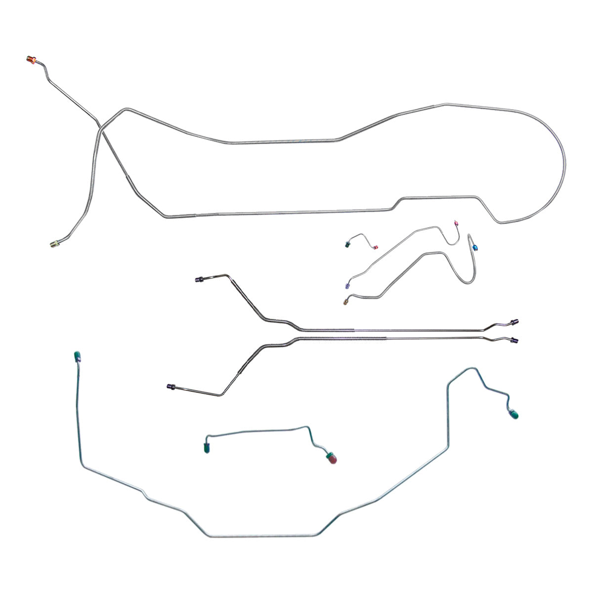 This preformed complete brake line kit will replace all the metal brake lines on your vehicle and includes the master cylinder lines, left front line and right-front crossover line, intermediate lines, and rear axle lines/trailing arm lines.