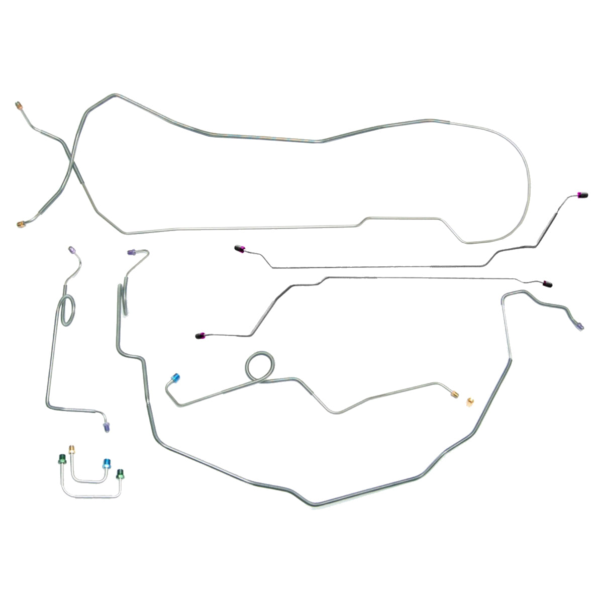 This preformed complete brake line kit will replace all the metal brake lines on your vehicle and includes the master cylinder lines, left front line and right front crossover line, intermediate lines, and rear axle lines/trailing arm lines.