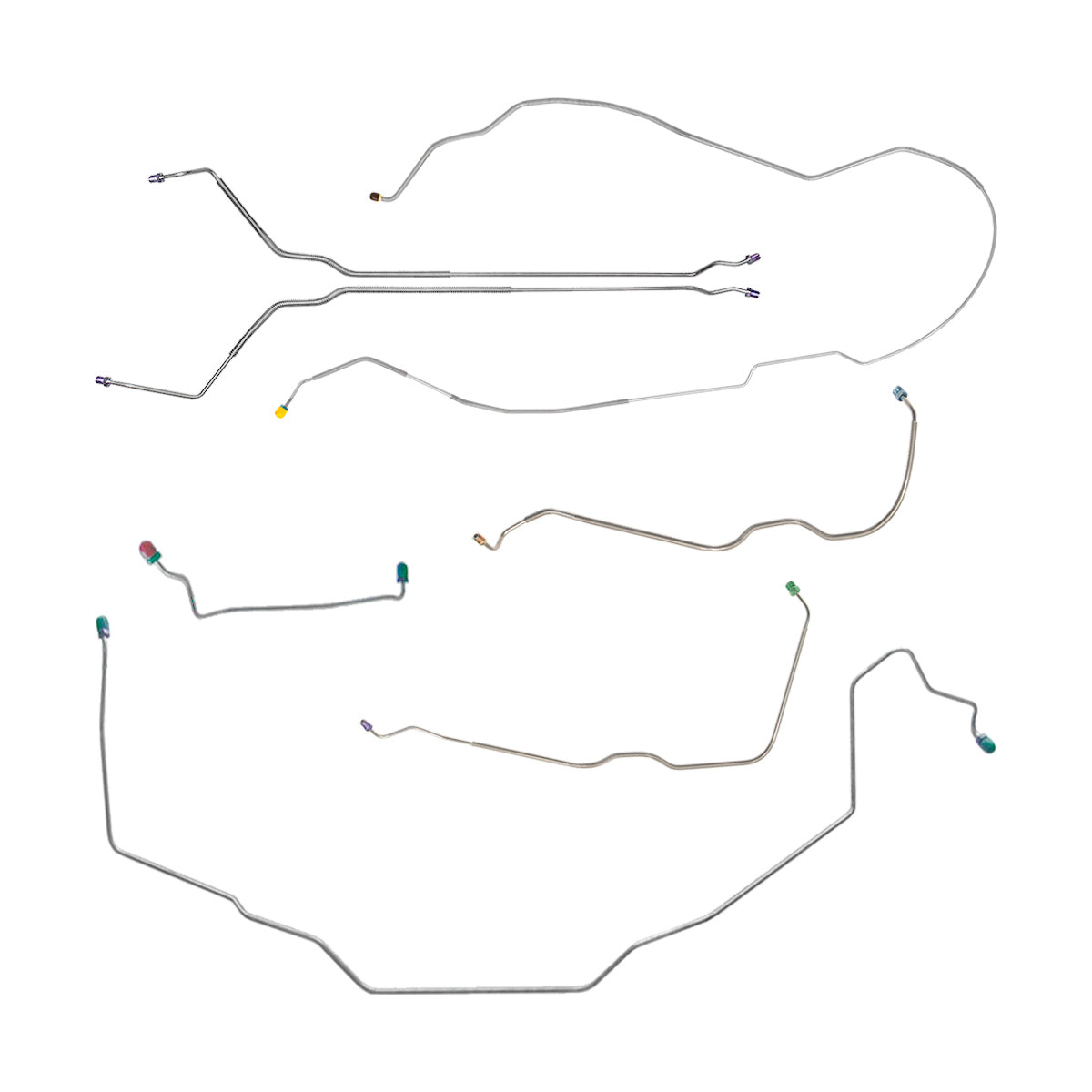 This preformed complete brake line kit will replace all the metal brake lines on your vehicle and includes the master cylinder lines, left front line and right-front crossover line, intermediate lines, and rear axle lines/trailing arm lines.