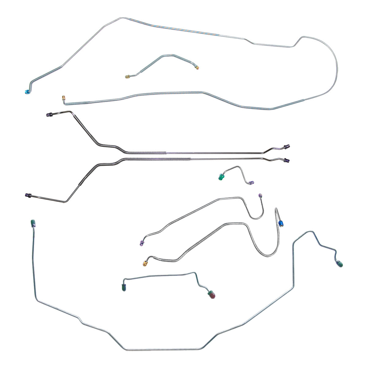 This preformed complete brake line kit will replace all the metal brake lines on your vehicle and includes the master cylinder lines, left front line and right-front crossover line, intermediate lines, and rear axle lines/trailing arm lines.