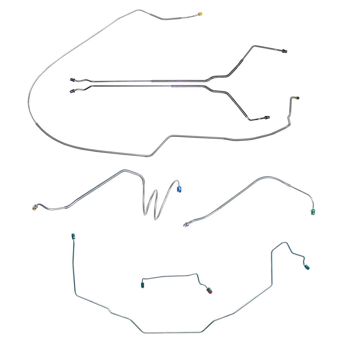 This preformed complete brake line kit will replace all the metal brake lines on your vehicle and includes the master cylinder lines, left front line and right-front crossover line, intermediate lines, and rear axle lines/trailing arm lines.