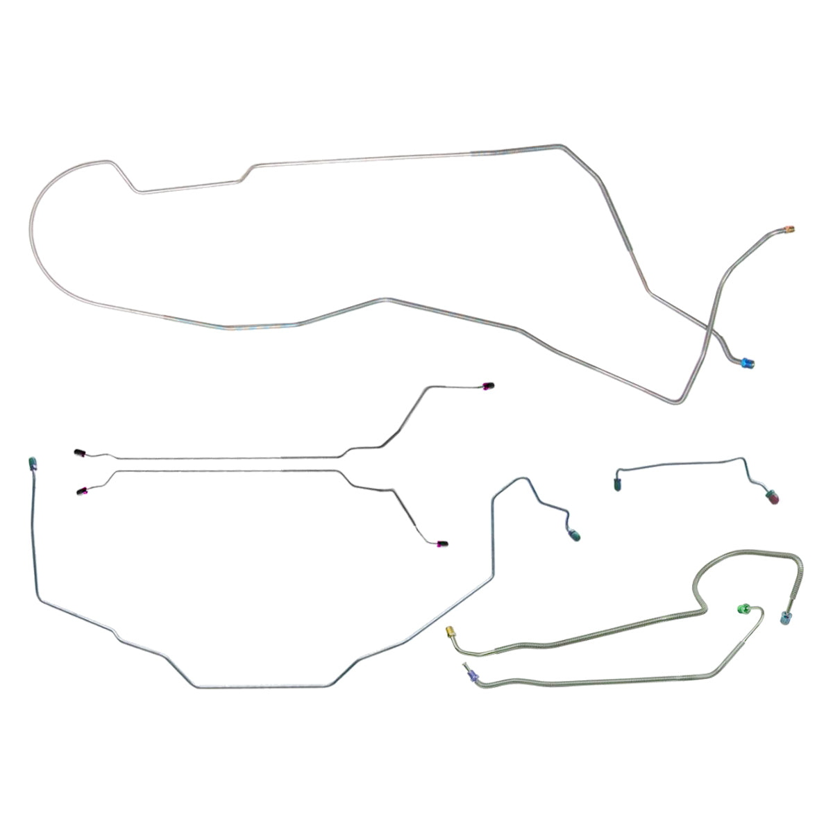 This preformed complete brake line kit will replace all the metal brake lines on your vehicle and includes the master cylinder lines, left front line and right front crossover line, intermediate lines, and rear axle lines/trailing arm lines.