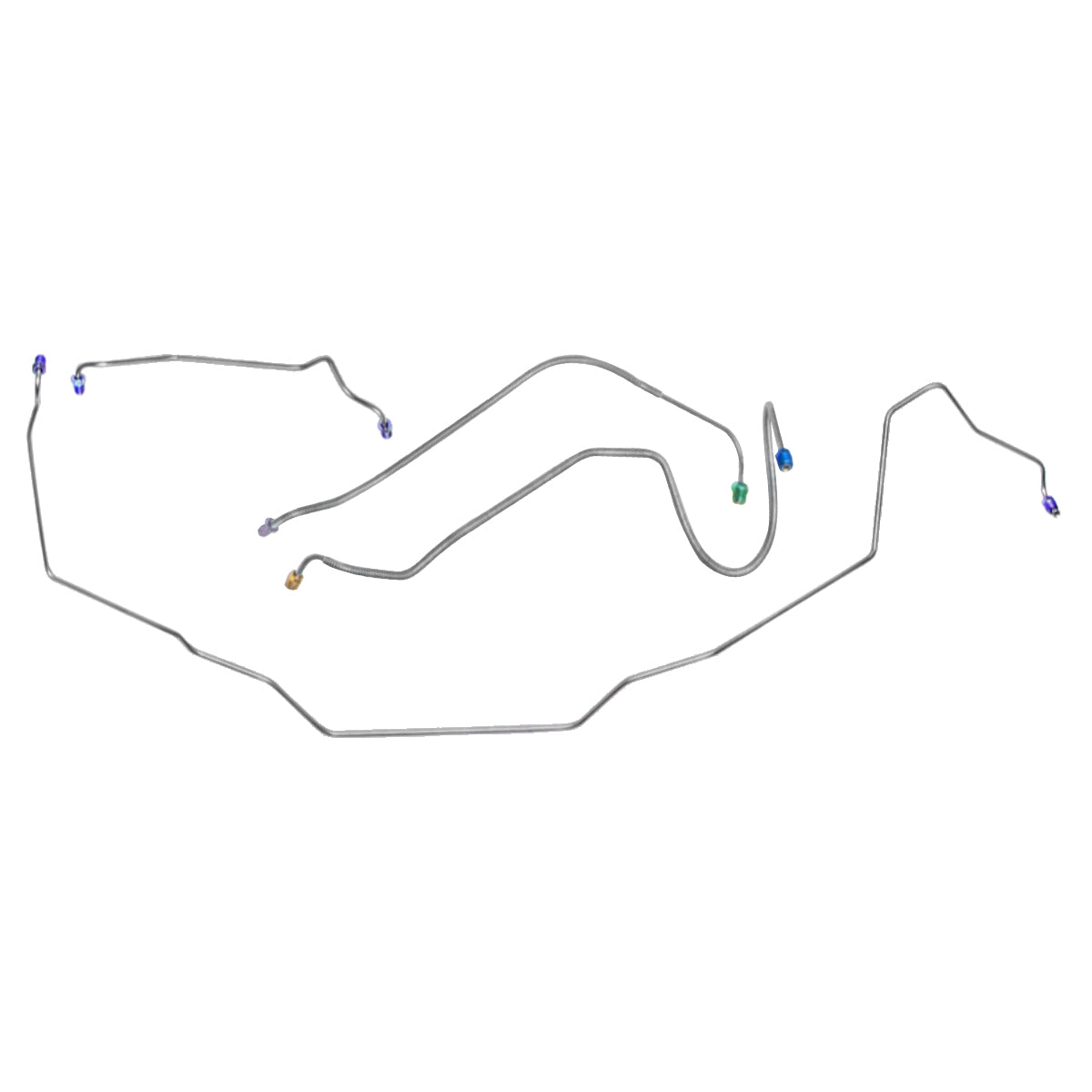 This preformed front brake line kit includes all the metal brake lines to supply the front two wheels of your vehicle and includes the master cylinder lines, left front line, and right front crossover line.