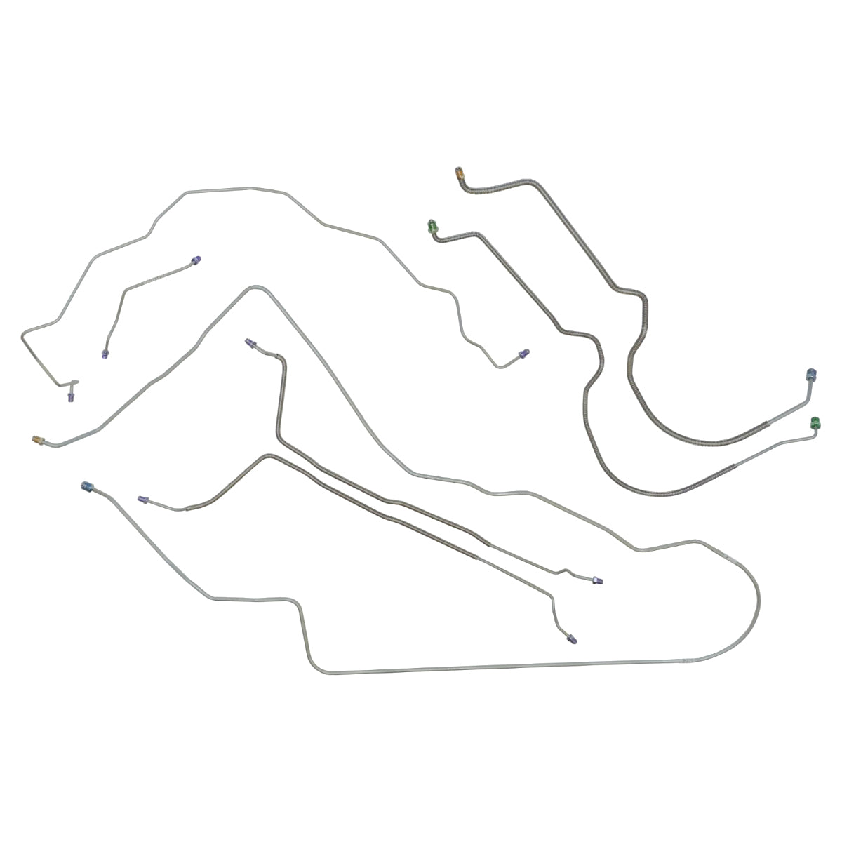 This preformed complete brake line kit will replace all the metal brake lines on your vehicle and includes the master cylinder lines, left front line and right front crossover line, intermediate lines, and rear axle lines/trailing arm lines.