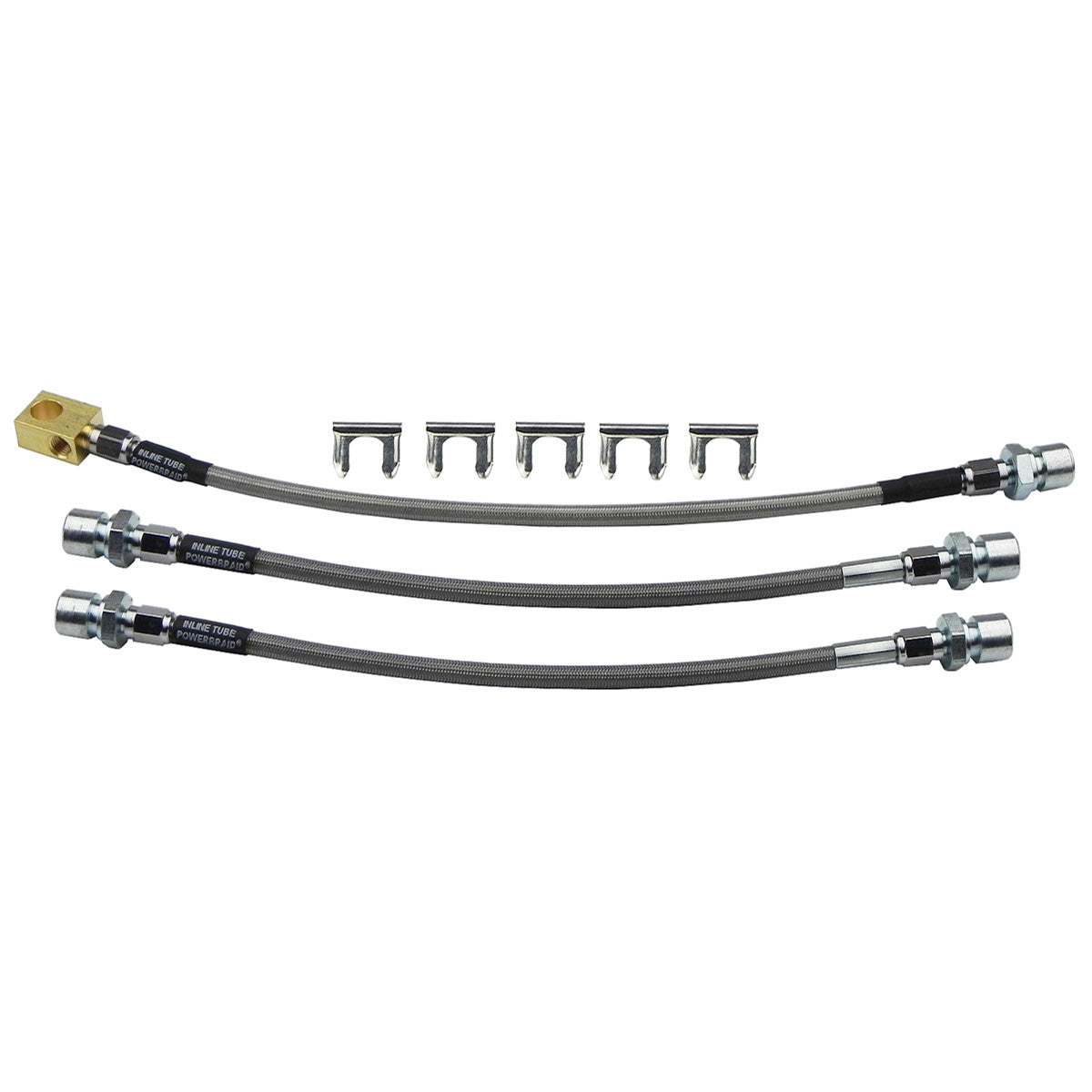 Stainless Flex Hoses - 1966-67 GM A-Body GTO/Lemans - Front DIsc 4 Piston Calipers/Rear Drum, 3 Hose Kit, 8pc