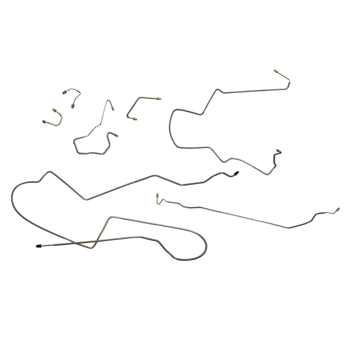 This preformed complete brake line kit will replace all the metal brake lines on your vehicle and includes the master cylinder lines, left front line and right front crossover line, intermediate lines, and rear axle lines/trailing arm lines.