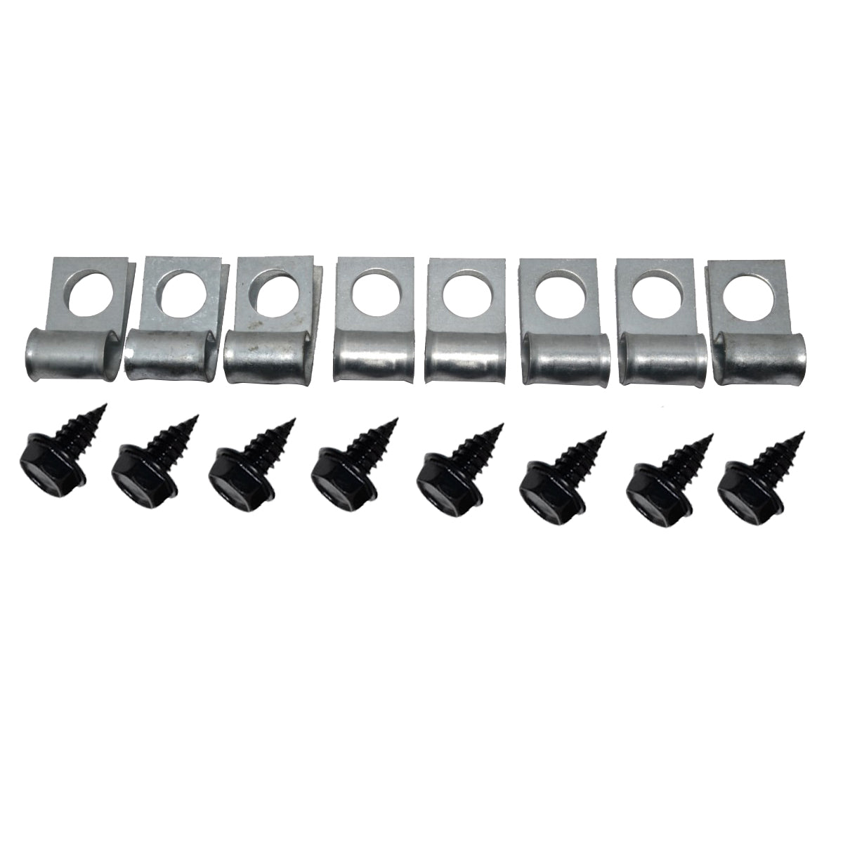 This clip kit includes all clips necessary to secure all the fuel lines to the chassis of the car: eight R style clips and eight bolts.
