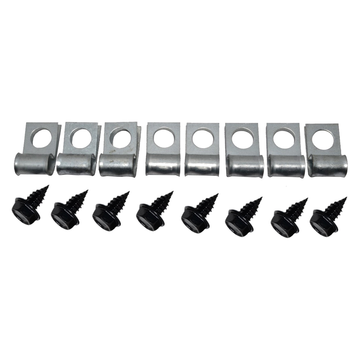 This clip kit includes all clips necessary to secure all the fuel lines to the chassis of the car: eight R style clips and eight bolts.