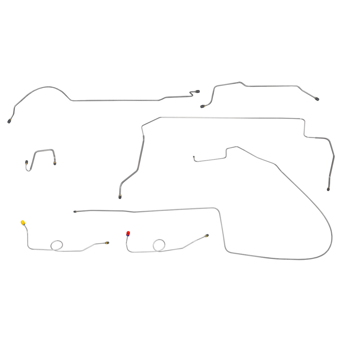 This preformed complete brake line kit will replace all the metal brake lines on your vehicle and includes the master cylinder lines, left front line and right-front crossover line, intermediate lines, and rear axle lines/trailing arm lines.