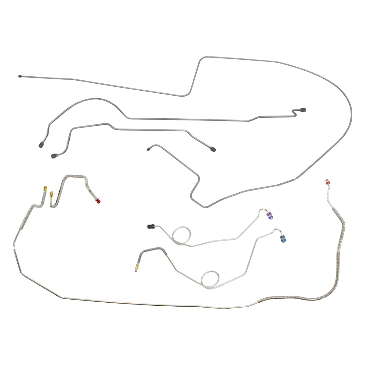 This preformed complete brake line kit will replace all the metal brake lines on your vehicle and includes the master cylinder lines, left front line and right-front crossover line, intermediate lines, and rear axle lines/trailing arm lines.
