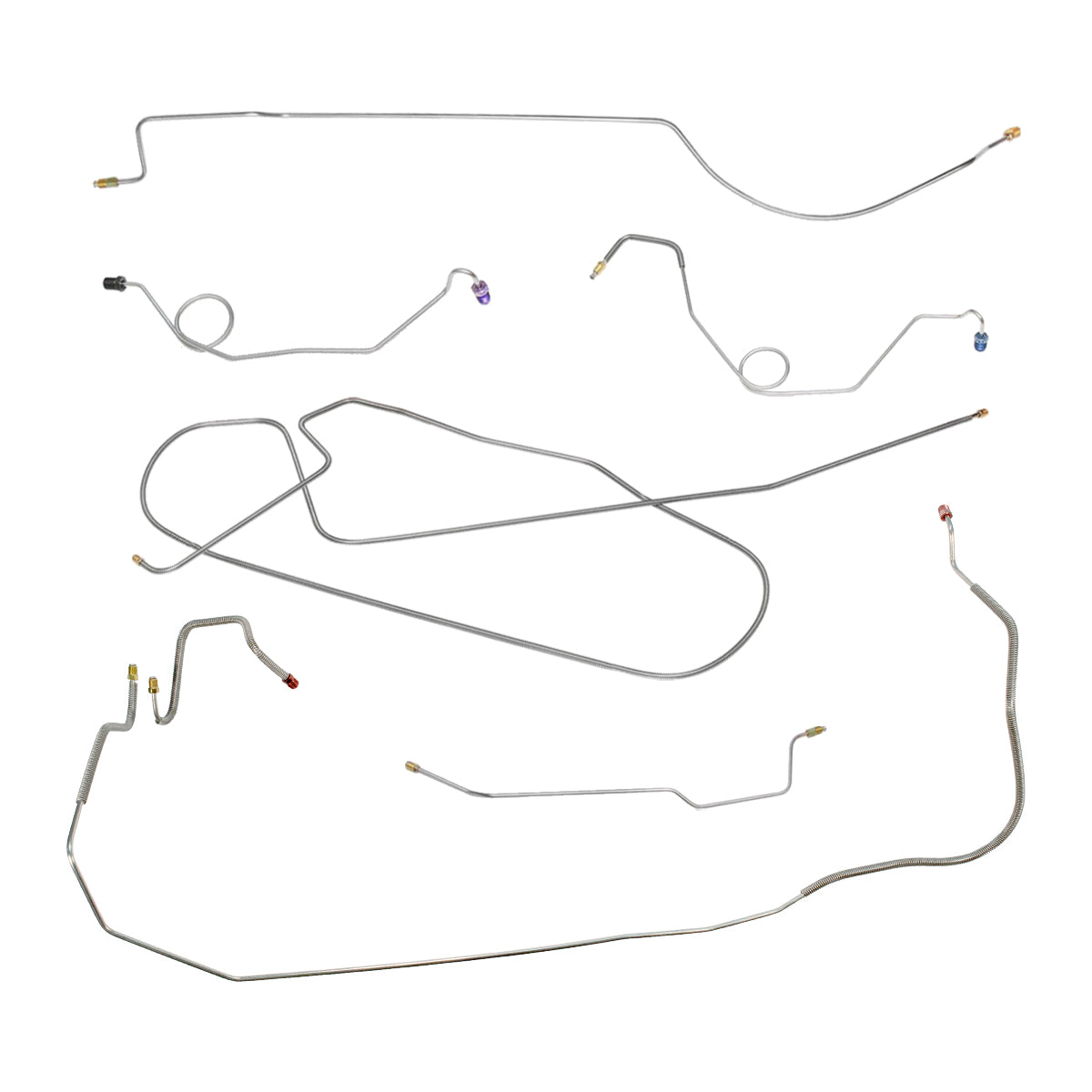 This preformed complete brake line kit will replace all the metal brake lines on your vehicle and includes the master cylinder lines, left front line and right-front crossover line, intermediate lines, and rear axle lines/trailing arm lines.