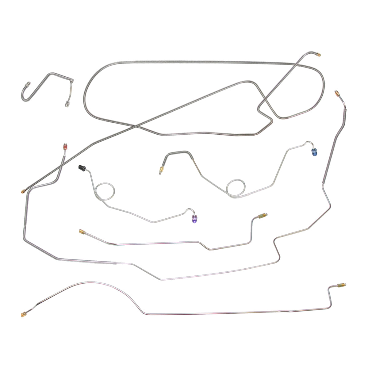 This preformed complete brake line kit will replace all the metal brake lines on your vehicle and includes the master cylinder lines, left front line and right-front crossover line, intermediate lines, and rear axle lines/trailing arm lines.