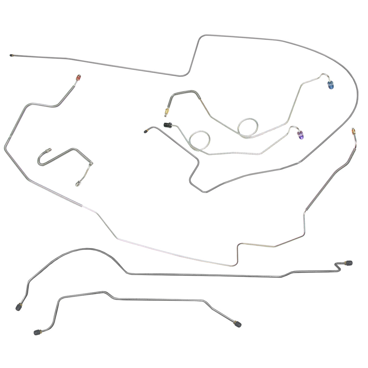 This preformed complete brake line kit will replace all the metal brake lines on your vehicle and includes the master cylinder lines, left front line and right-front crossover line, intermediate lines, and rear axle lines/trailing arm lines.