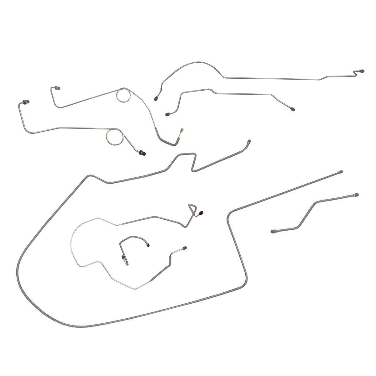This preformed complete brake line kit will replace all the metal brake lines on your vehicle and includes the master cylinder lines, left front line and right-front crossover line, intermediate lines, and rear axle lines/trailing arm lines.