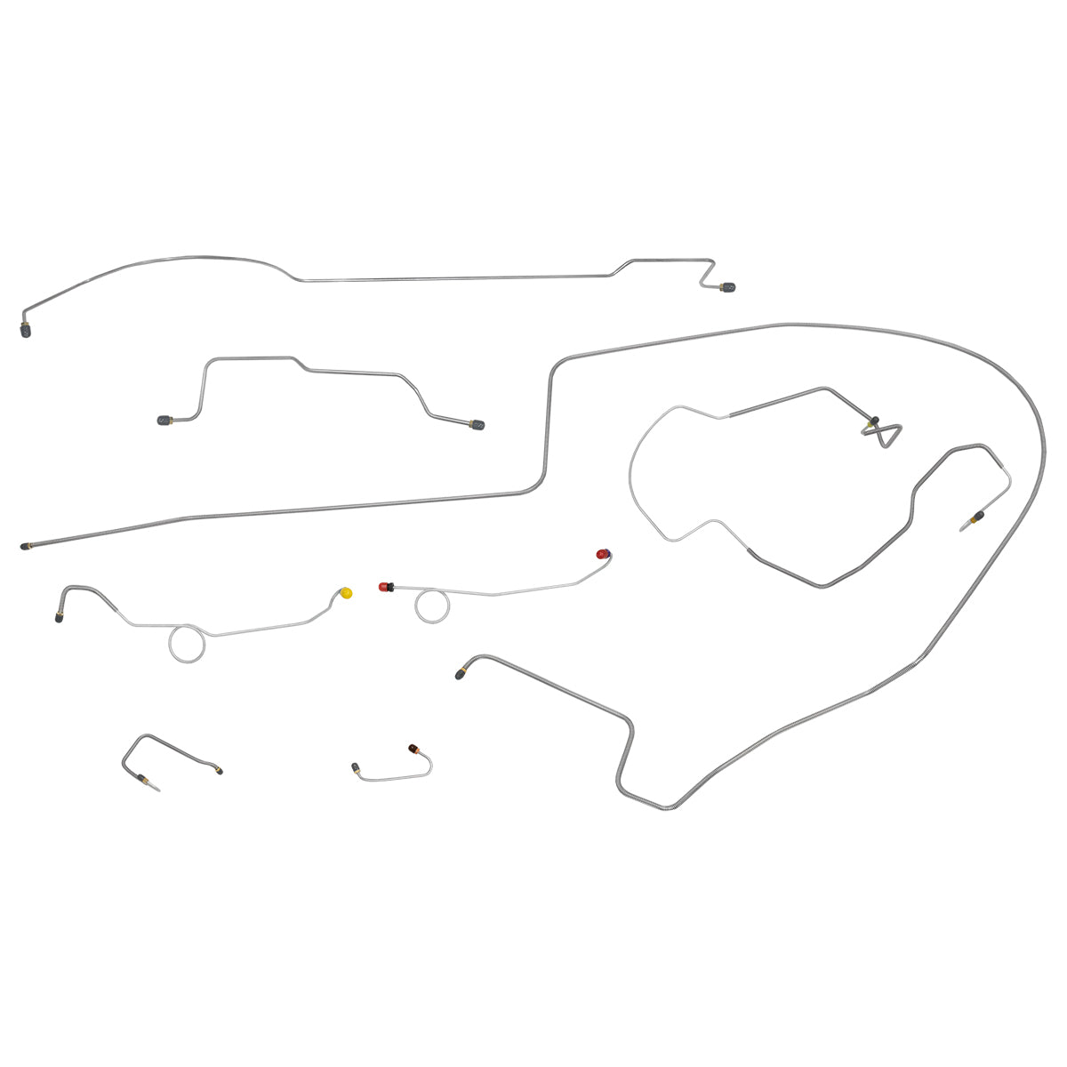 This preformed complete brake line kit will replace all the metal brake lines on your vehicle and includes the master cylinder lines, left front line and right-front crossover line, intermediate lines, and rear axle lines/trailing arm lines.