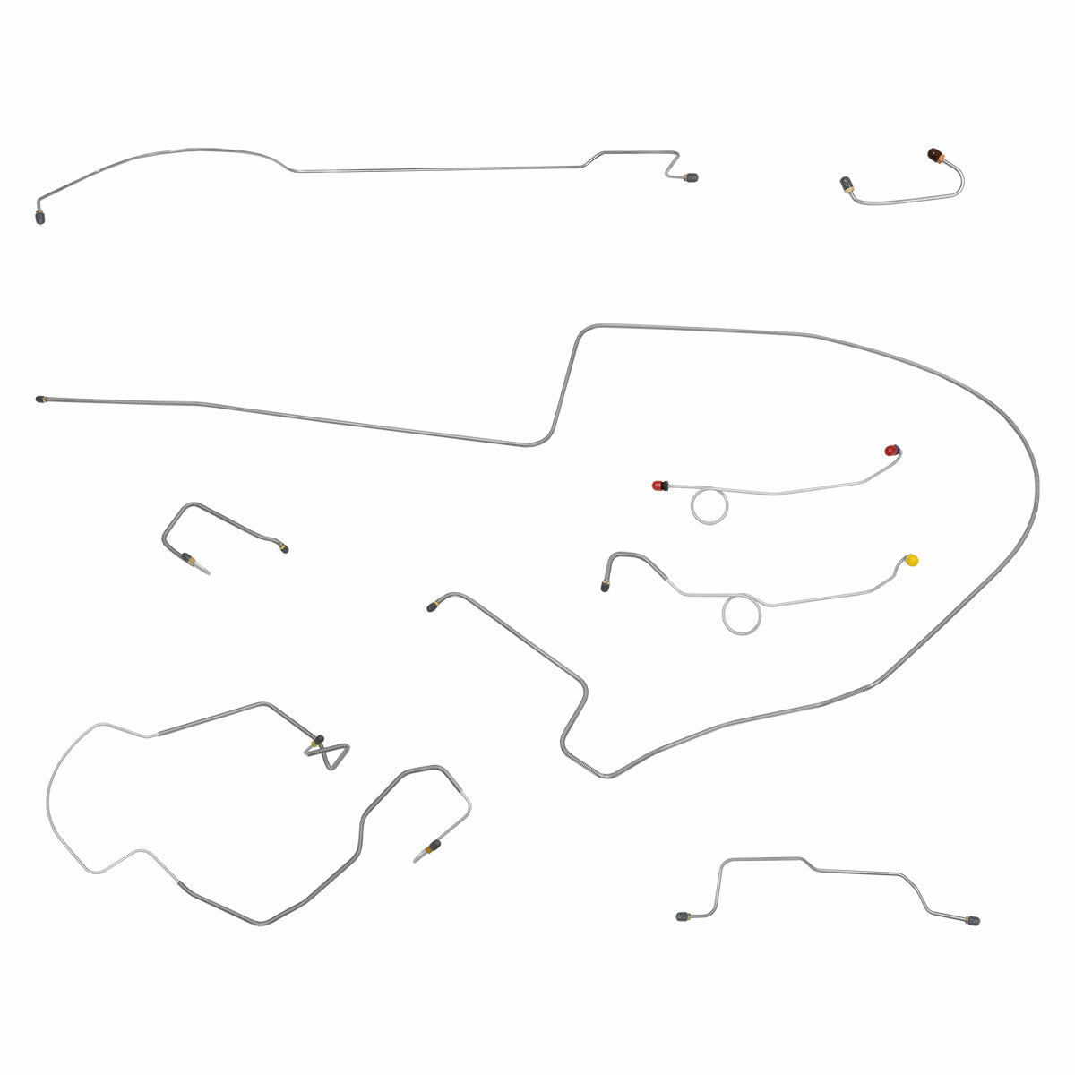 This preformed complete brake line kit will replace all the metal brake lines on your vehicle and includes the master cylinder lines, left front line and right-front crossover line, intermediate lines, and rear axle lines/trailing arm lines.