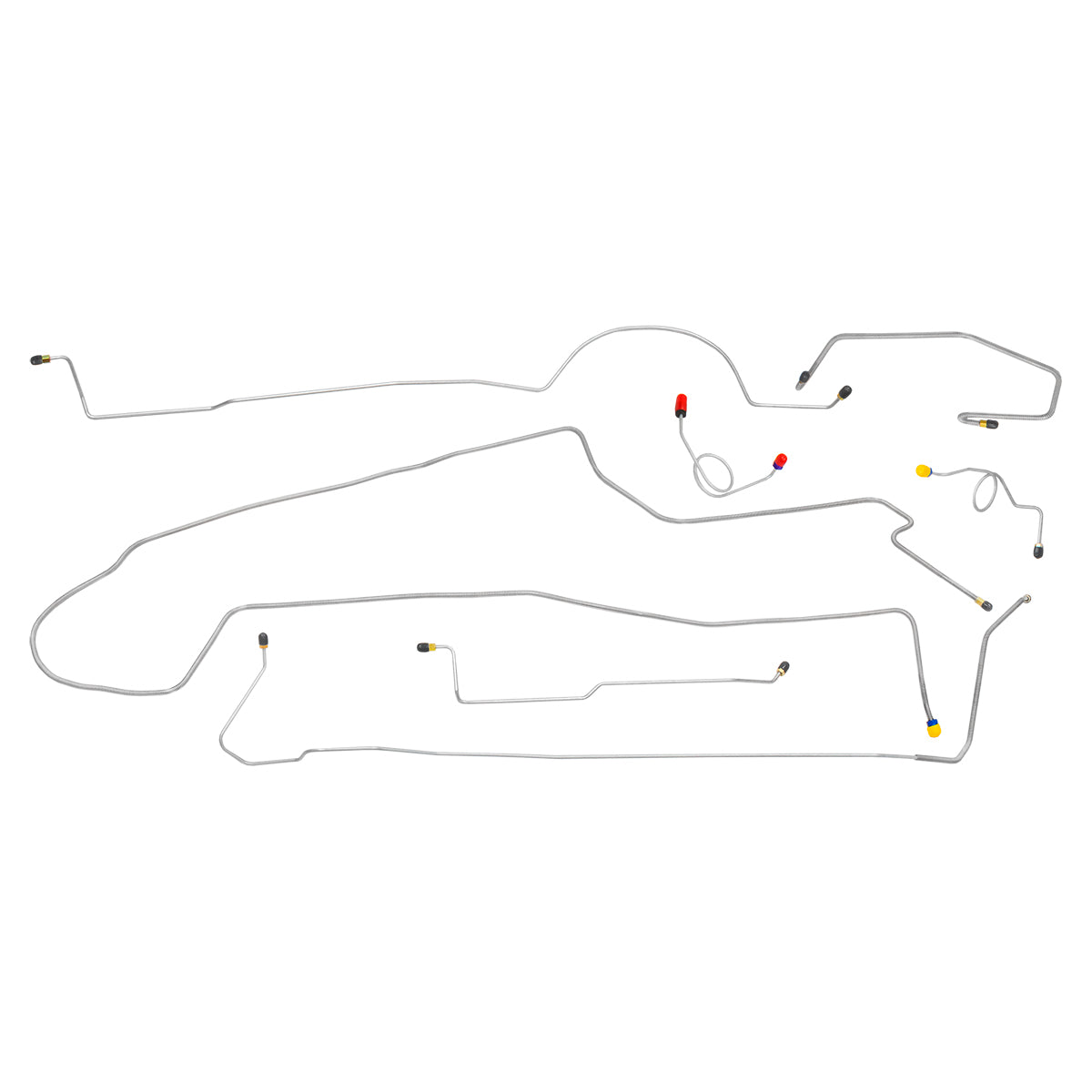 This preformed complete brake line kit will replace all the metal brake lines on your vehicle and includes the master cylinder lines, left front line and right front crossover line, intermediate lines, and rear axle lines/trailing arm lines.